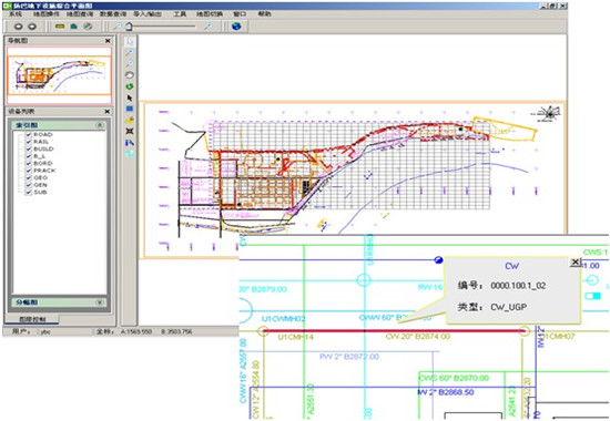 化工園總圖規劃系統將以原始圖紙資料為基礎做成的管廊、管線數據,以二維展現的方式加載到系統中,它不僅支持海量的矢量、影像和業務屬性等數據的加載和顯示
